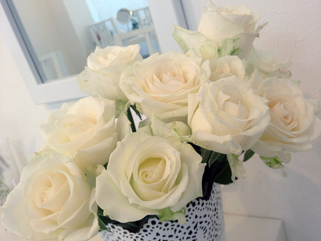 E様から綺麗な白いバラの花束をいただきました揺れるハート