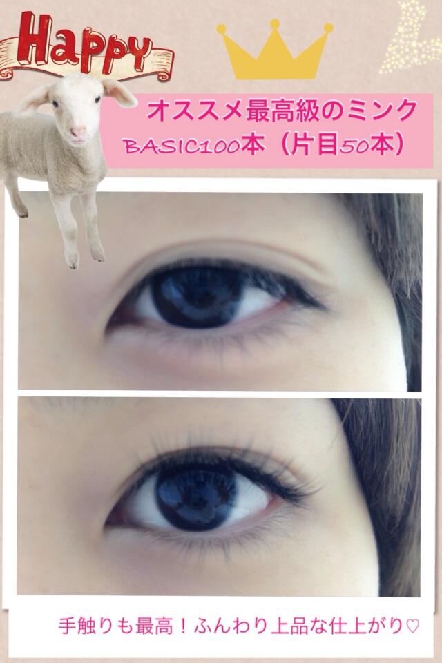 写真は、片目50本両目で100本、当サロンではBasicなお仕上がり